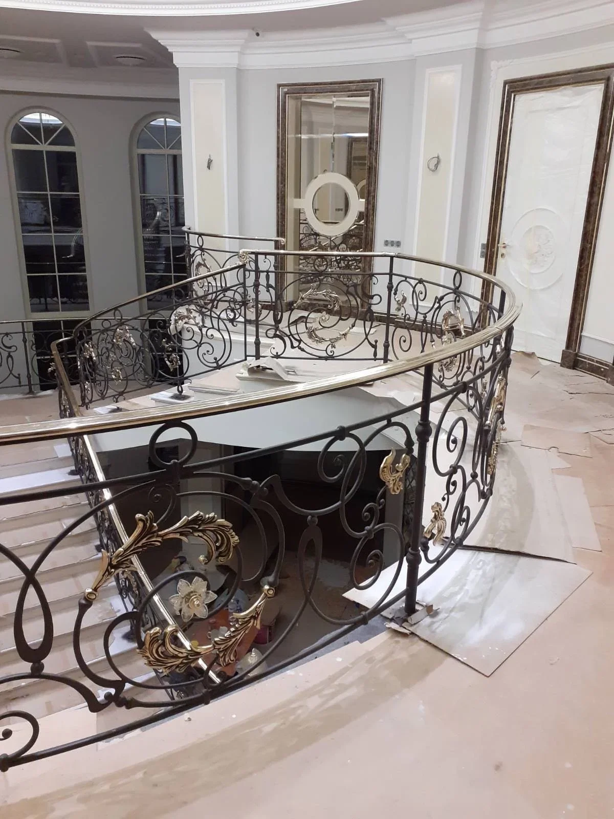 Balustrada na antresoli stanowi harmonijne przedłużenie klatki schodowej, dbając o spójność estetyczną całego holu.