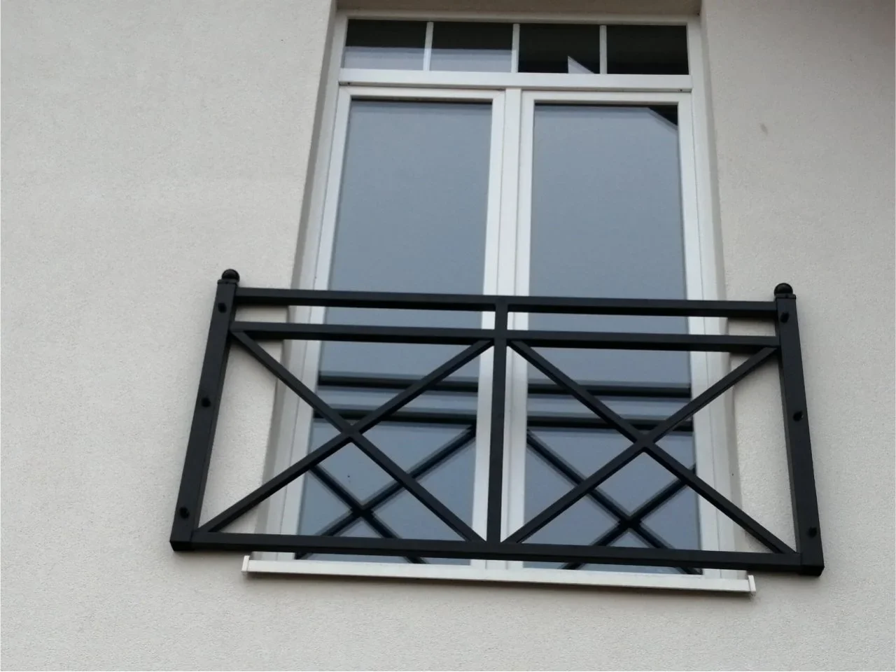 Minimalistyczny balkon francuski o geometrycznym wzorze. Prosta forma pasuje do nowoczesnego budownictwa i zapewnia bezpieczeństwo.