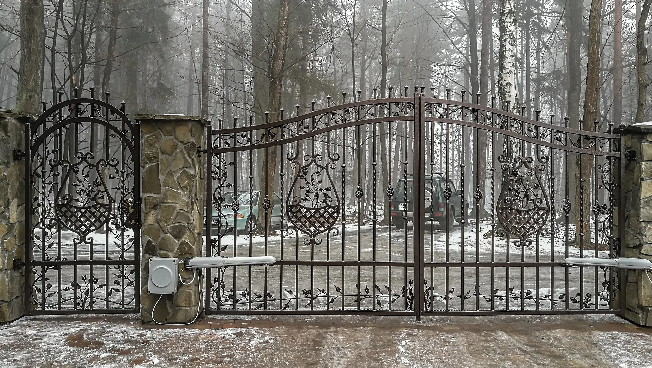 Ten wzór balustrady to propozycja dla osób, które nie lubią nudy. Przęsła wypełnione są symetrycznymi układami kutych elementów w kształcie litery S oraz tralek z ozdobnymi skręceniami.
