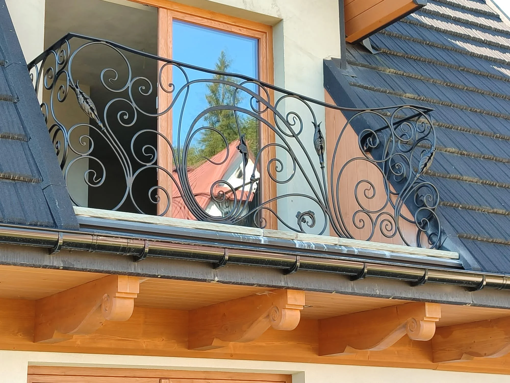 Widok boczny na balustradę balkonową. Solidna konstrukcja i estetyczne wygięcia zapewniają trwałość i piękny wygląd.