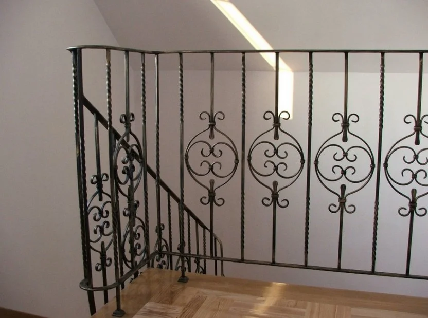 Balustrada o gęstym wypełnieniu, gwarantująca bezpieczeństwo i ponadczasowy wygląd. Ozdobne, kute rozety stanowią centralny punkt każdego przęsła, nawiązując do najlepszych wzorców rzemiosła.