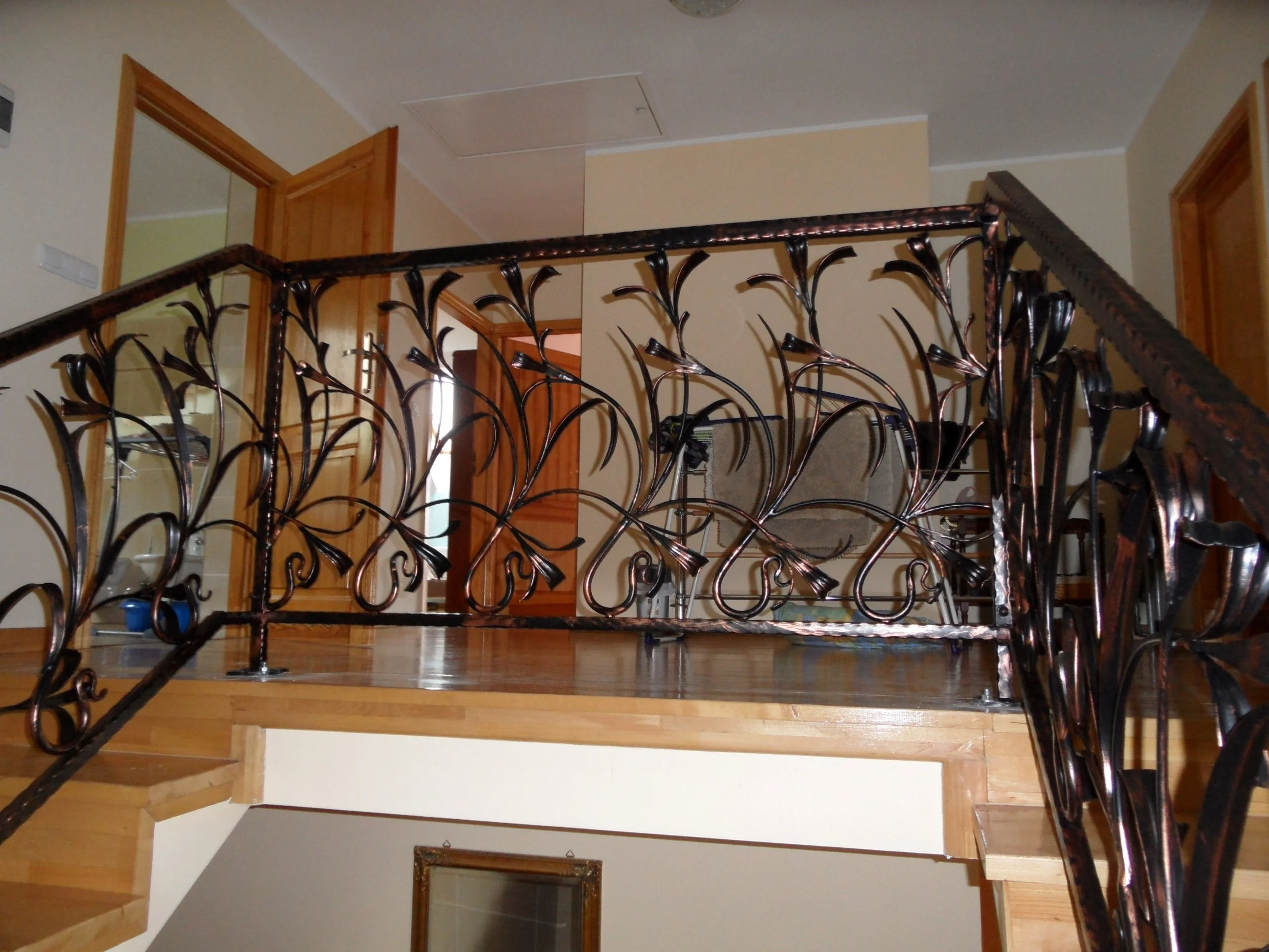 Barierka na antresoli będąca kontynuacją motywu kwiatowego ze schodów. Bezpieczeństwo połączone z niepowtarzalną dekoracją domu.
