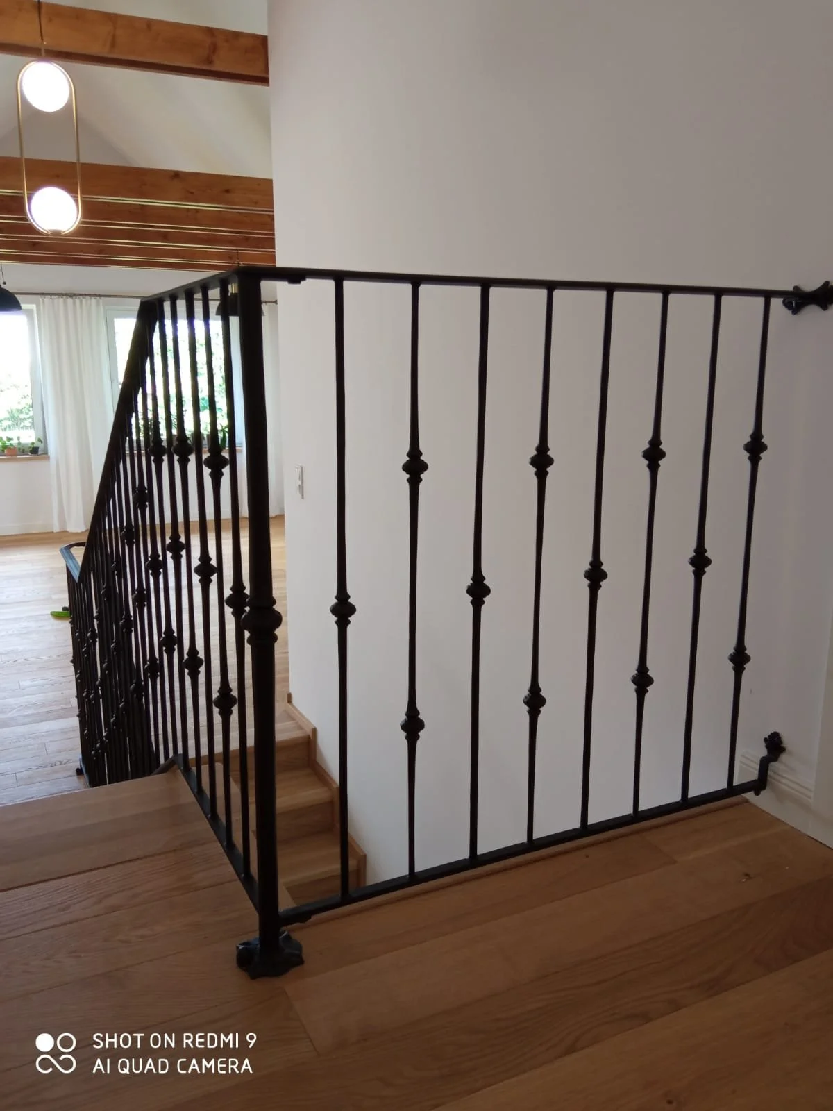 Perspektywa z półpiętra na balustradę schodową. Solidne mocowanie i dbałość o geometrię zapewniają bezpieczeństwo i estetykę.