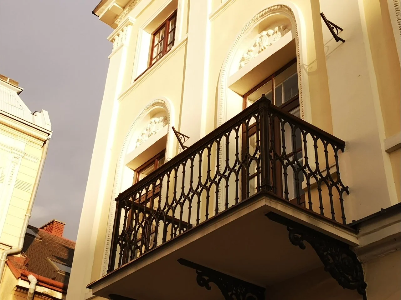 Realizacja balustrady balkonowej idealnie wkomponowanej w elewację stylowej kamienicy. Prestiżowe wykończenie budynku.
