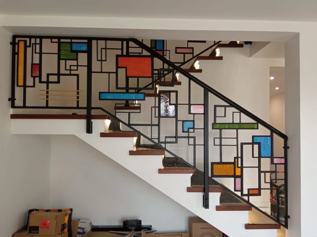 Kolejne spojrzenie na detale, które budują unikalność naszej nowoczesnej balustrady. Gra kolorów i pionowych podziałów.