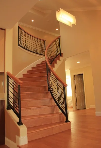 Geometryczny wzór balustrady opartej na poziomych liniach. Idealne rozwiązanie do nowoczesnych, otwartych przestrzeni w domach jednorodzinnych.