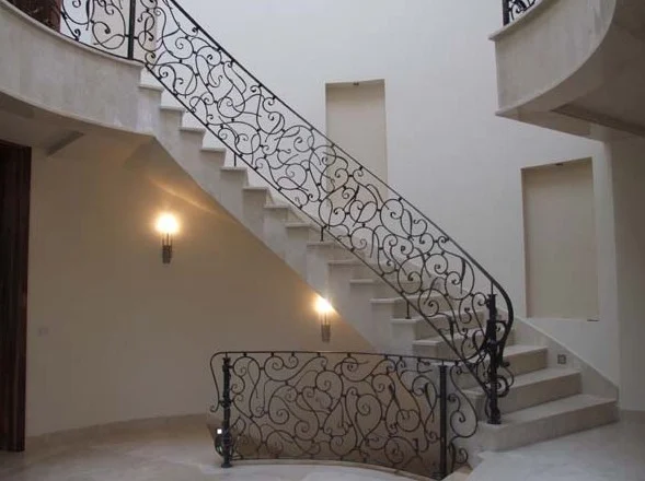Przepiękna realizacja balustrady, która nadaje wnętrzu monumentalny i luksusowy charakter. Każdy element wzoru został precyzyjnie wykonany metodami kowalskimi, tworząc harmonijną całość przypominającą historyczne rezydencje.
