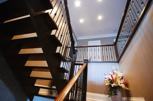 Wewnętrzna balustrada o prostym, a zarazem eleganckim wzorze. Pionowe pręty zwieńczone dekoracyjnymi kulkami pasują do nowoczesnych wnętrz.