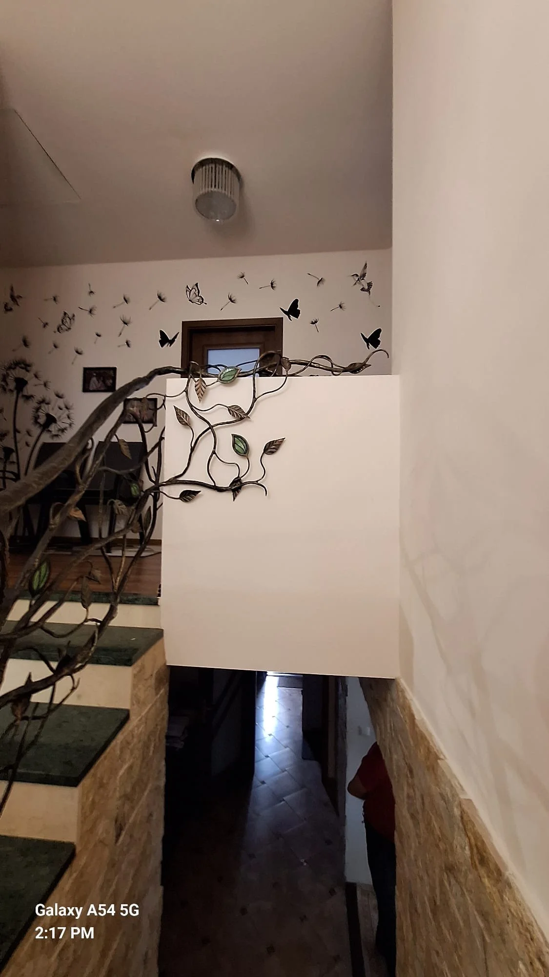 Ujęcie pokazujące, jak motyw wijącej się gałęzi zostaje kontynuowany na górnym spoczniku, zapewniając bezpieczeństwo i estetyczną spójność.