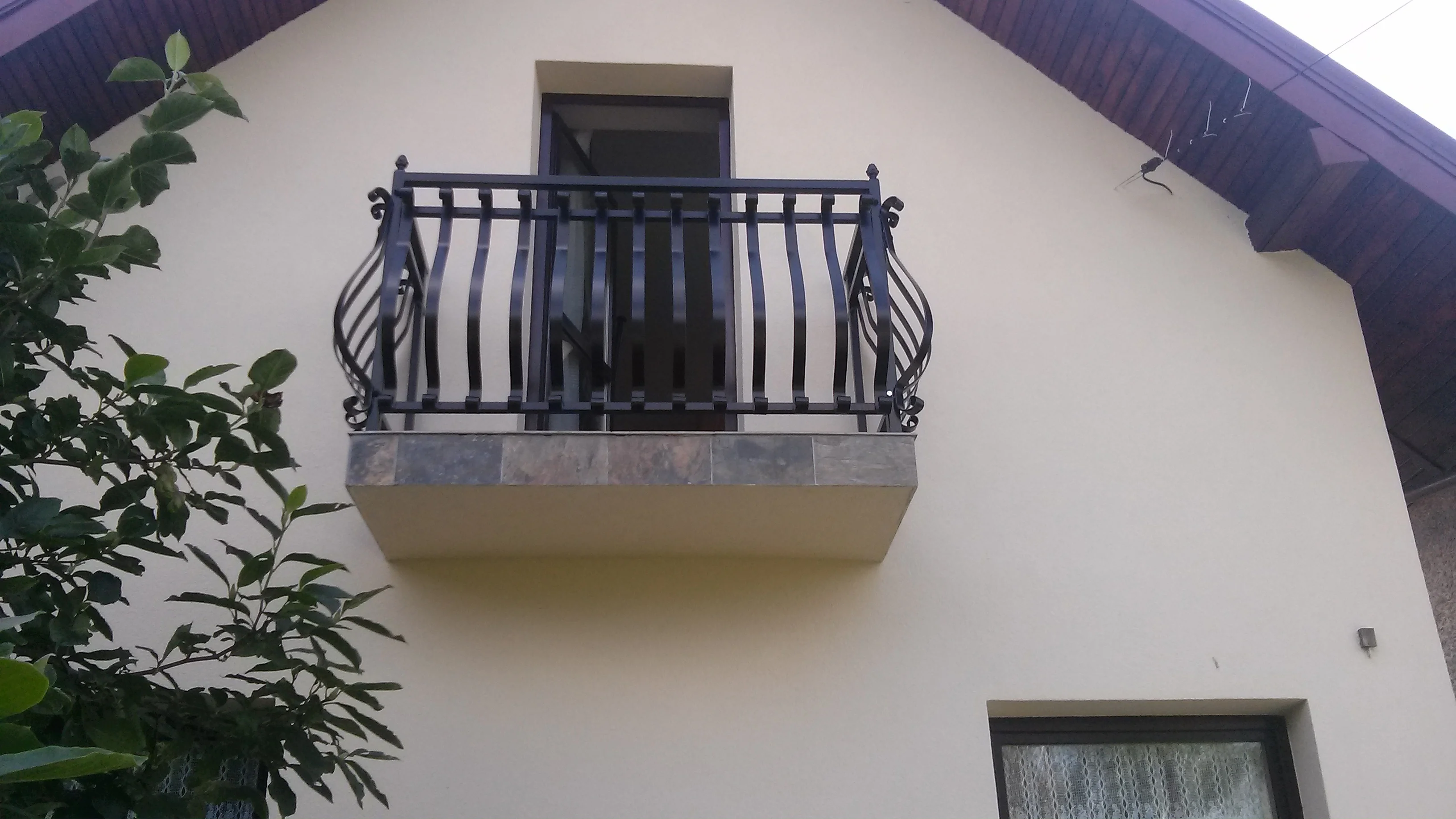 Nasze realizacje prezentują się doskonale z każdej perspektywy. Tutaj widoczna **balustrada kuta** na małym balkonie, idealnie komponująca się z bryłą budynku.