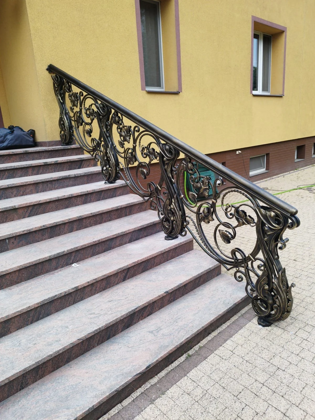 Wytrzymała i estetyczna balustrada do schodów zewnętrznych. Odporna na warunki atmosferyczne dzięki cynkowaniu ogniowemu i malowaniu proszkowemu.