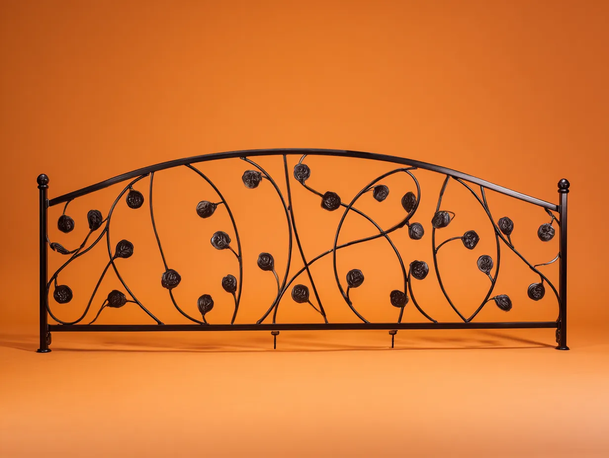 Model "Pnąca Róża" to artystyczna interpretacja natury, przeniesiona na trwałość stali. Ten niskoprofilowy panel, idealny jako stylowa brama wjazdowa do ogrodu lub elegancka balustrada tarasowa, zachwyca swoją lekkością i asymetrycznym układem linii. Projekt opiera się na motywie wijących się pnączy, które swobodnie przeplatają się wewnątrz łukowej ramy. Dowolnie rozmieszczone, kute elementy w kształcie pąków lub owoców nadają konstrukcji rzeźbiarski, nieco baśniowy charakter. Całość została wykończona w satynowej czerni, co pozwala na subtelne wydobycie detali kowalskich bez przytłaczania otoczenia. To idealny wybór dla osób szukających elementu ogrodzenia, który bardziej przypomina rzeźbę ogrodową niż tradycyjną barierę, doskonale komponując się z bujną zielenią i naturalnym krajobrazem.