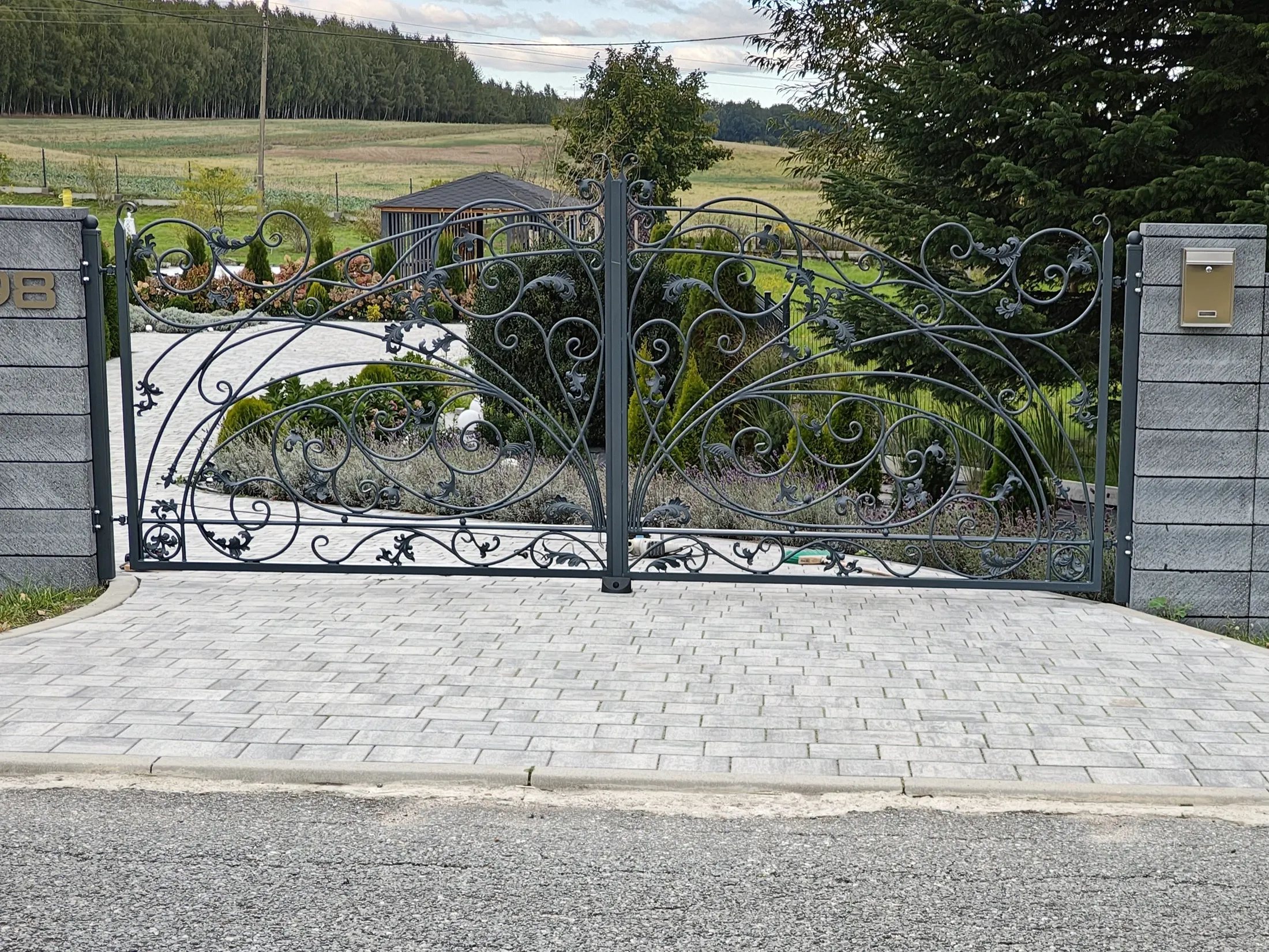 Przedstawiamy realizację bramy, która dominuje w przestrzeni dzięki swoim unikalnym, szerokim splotom kowalskim.