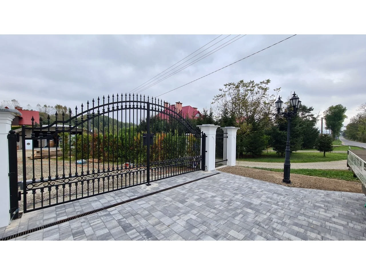 Brama kuta dwuskrzydłowa - podjazd z kostki