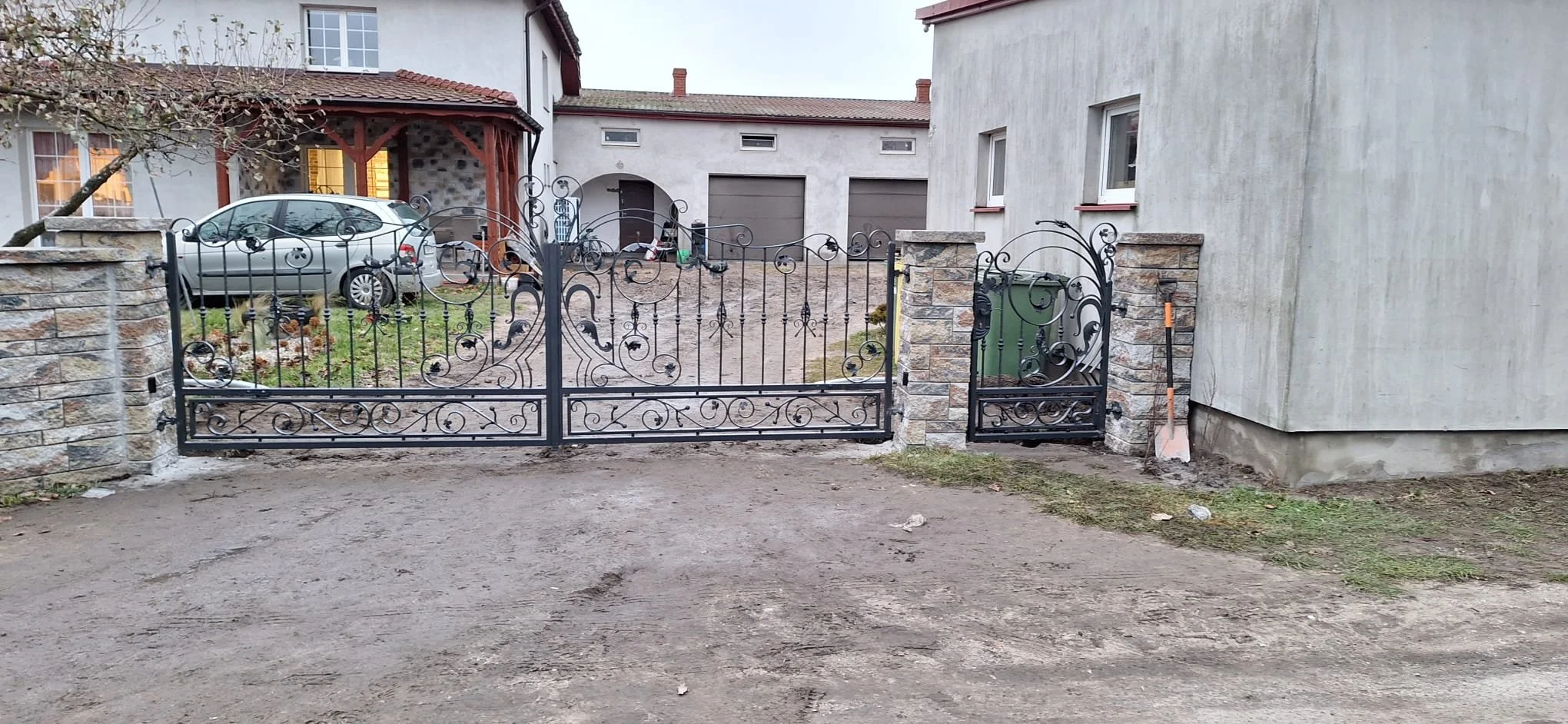 Brama wjazdowa do kompletu z furtką. Trwała konstrukcja o wyrafinowanym wzornictwie, stanowiąca ozdobę frontu posesji.