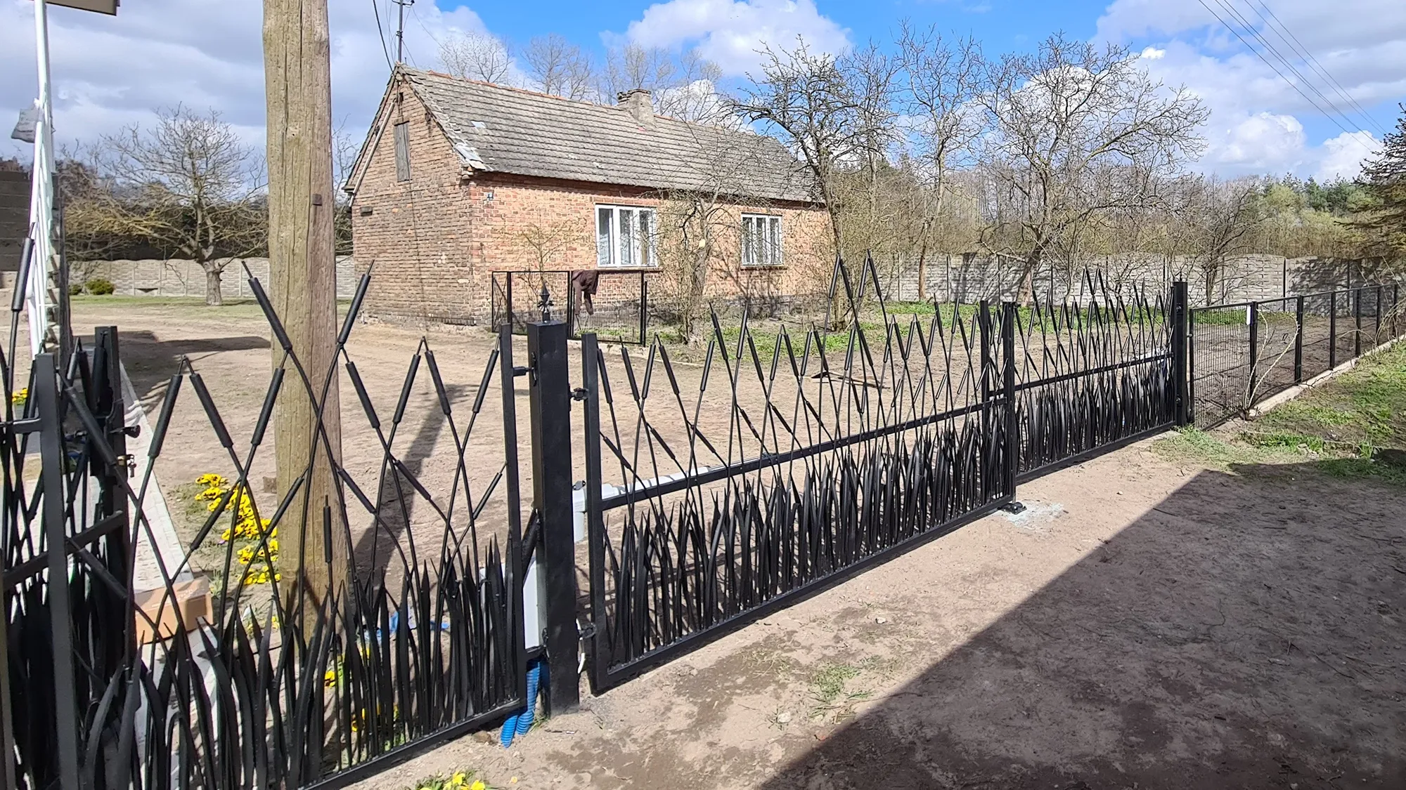 Brama wjazdowa będąca częścią autorskiego systemu ogrodzeń 'Szuwary'. Połączenie lekkości wizualnej z solidnością stali.