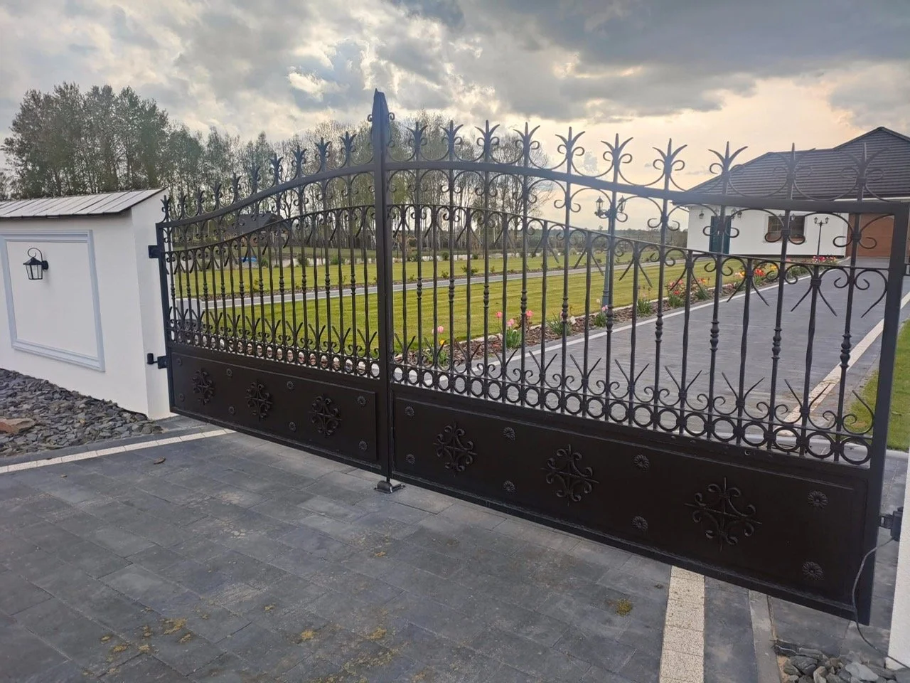 Nawet od strony ogrodu brama kuta prezentuje się nienagannie, będąc estetycznym elementem krajobrazu domowego.