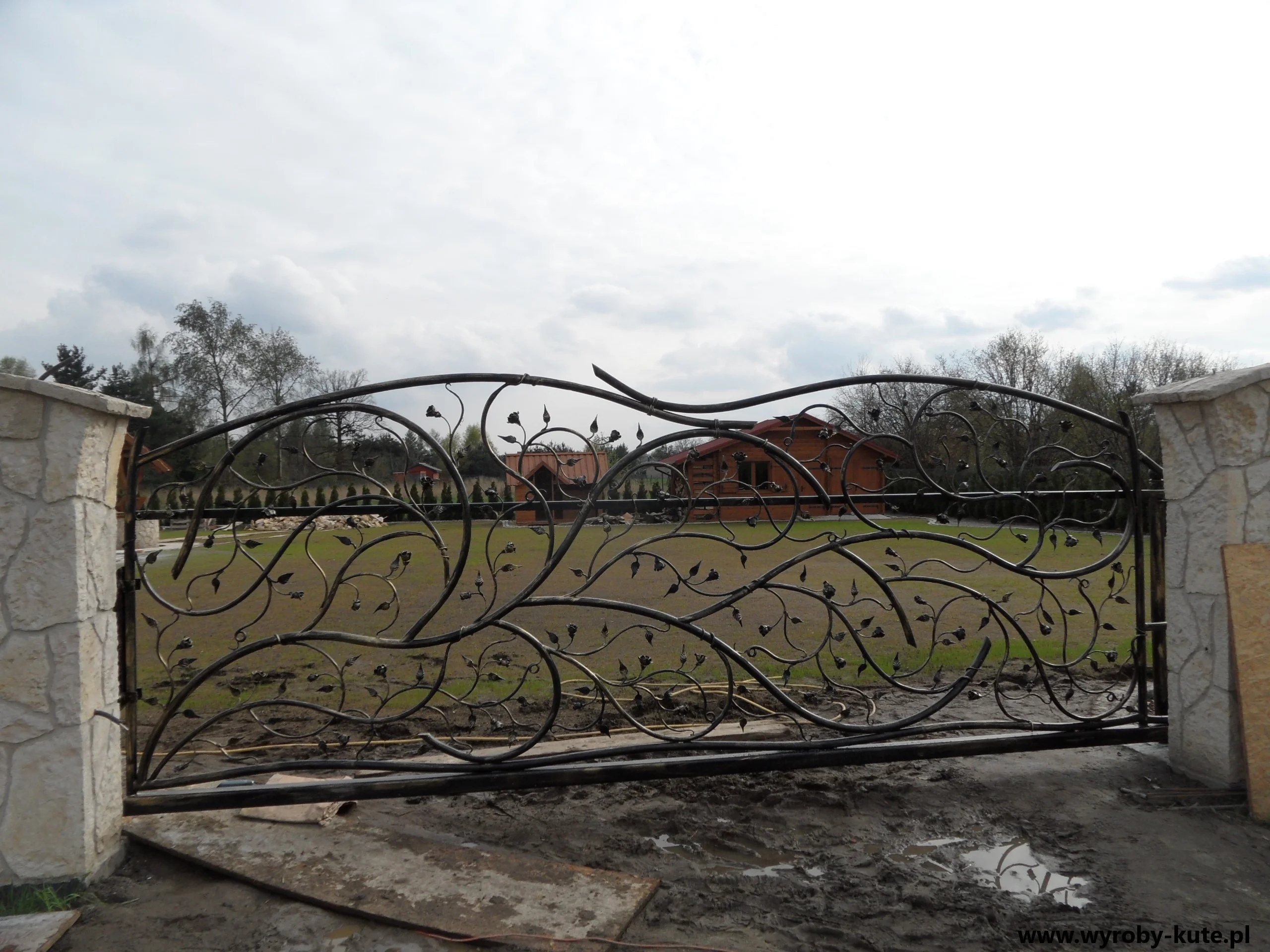 Brama Przesuwna Artystyczna - Gałęzie z Liśćmi
