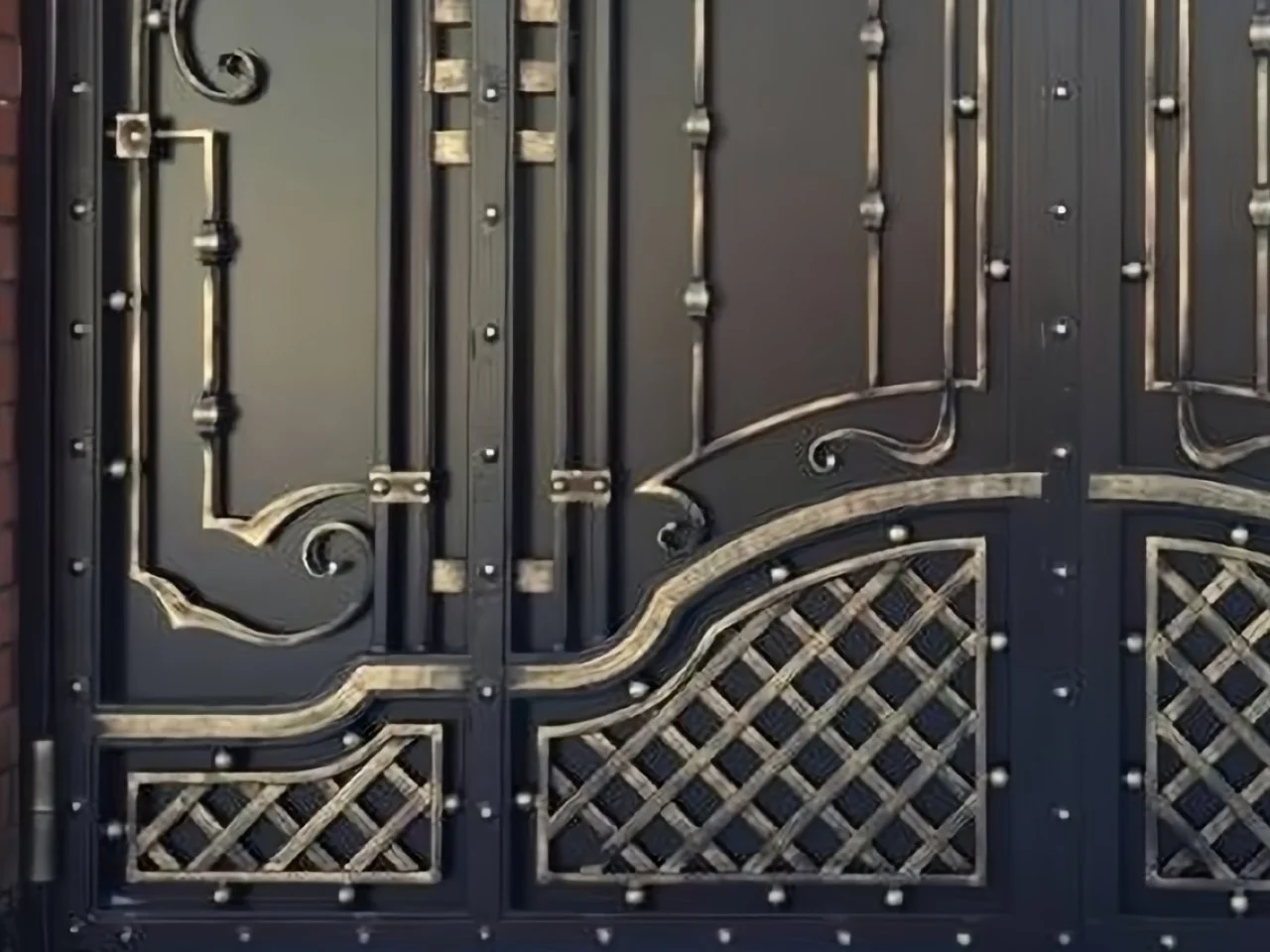 Nawet w dolnej części bramy dbamy o najwyższą jakość zdobień. Gęsta kratownica z ozdobnymi nitami tworzy solidną podstawę dla całej konstrukcji, będąc jednocześnie ciekawym elementem wizualnym.