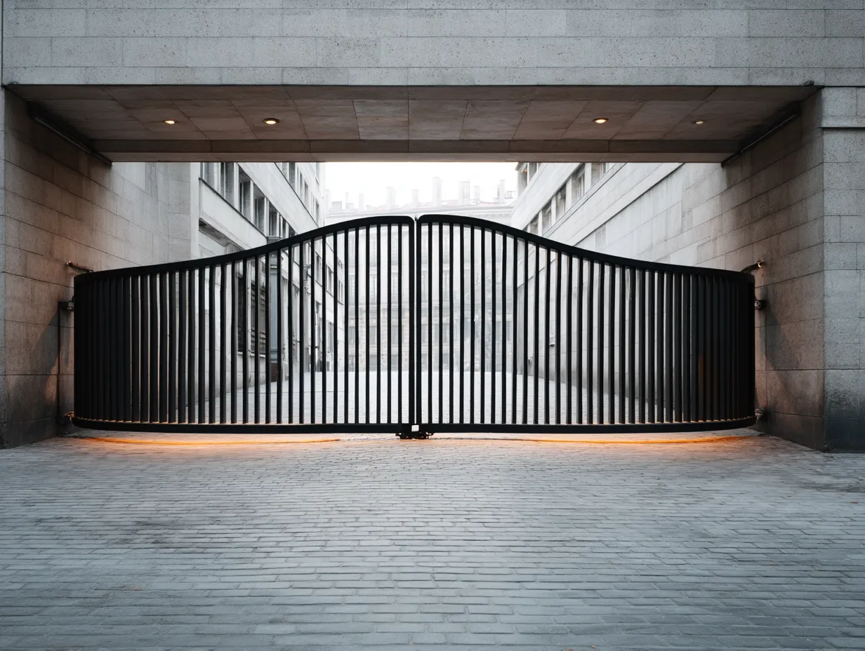 Model "Brama Triumfalna" to konstrukcja o nienormatywnych wymiarach, zaprojektowana do starych kamienic lub wjazdów podcieniowych. Ogromna skala bramy wymusza zastosowanie potężnych profili nośnych. Pionowe szczebliny są gęsto rozstawione, tworząc rytmiczną, niemal graficzną strukturę. Górna krawędź jest wyprofilowana tak, by idealnie wpisywać się w łuk architektoniczny budynku.
