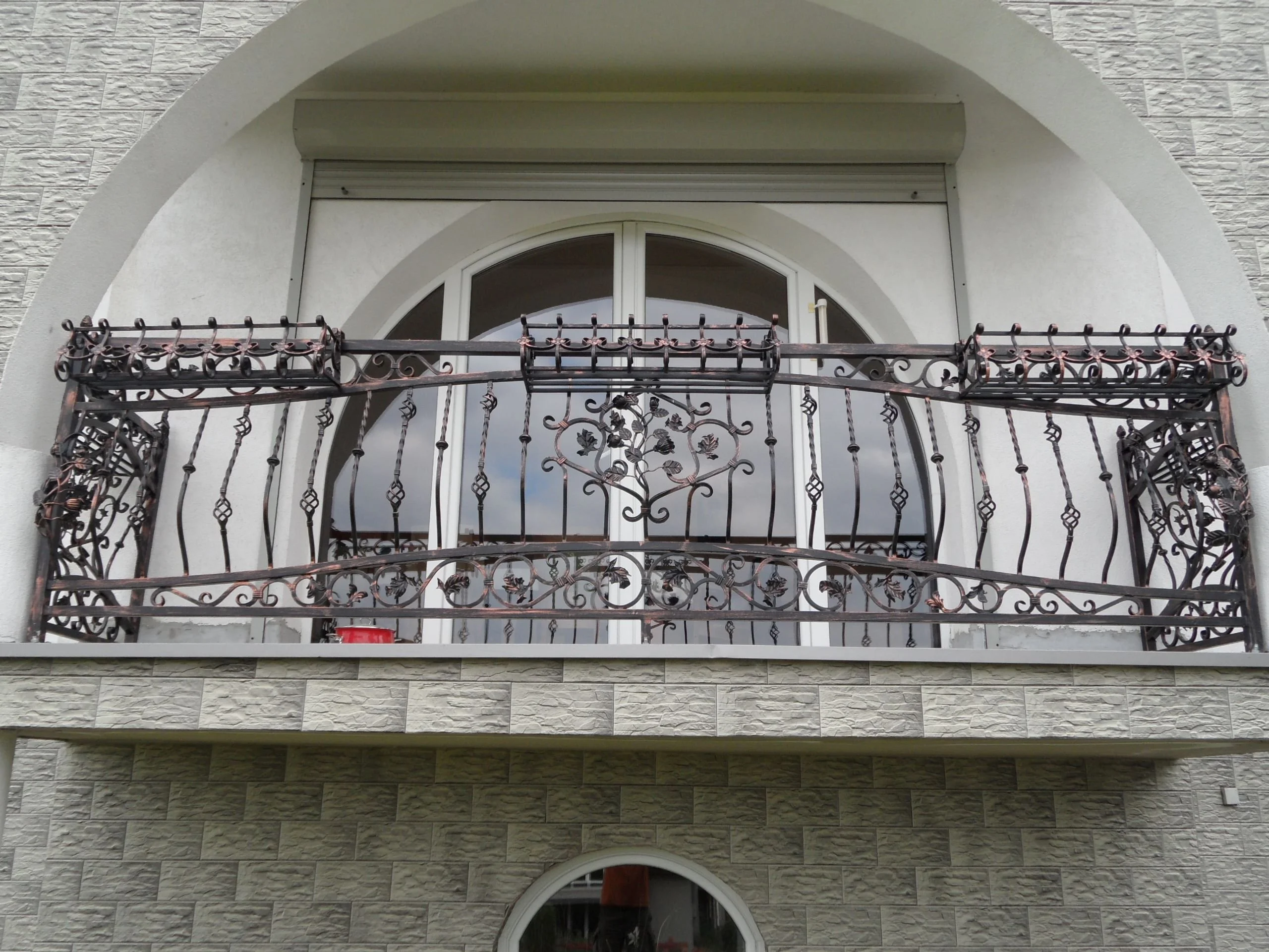 Detal kutej barierki balkonowej - miedź