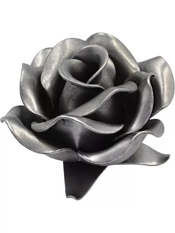 Kunsztownie wykonana róża z metalu. Każdy płatek jest ręcznie formowany, co nadaje kwiatu naturalny wygląd i niepowtarzalny charakter.