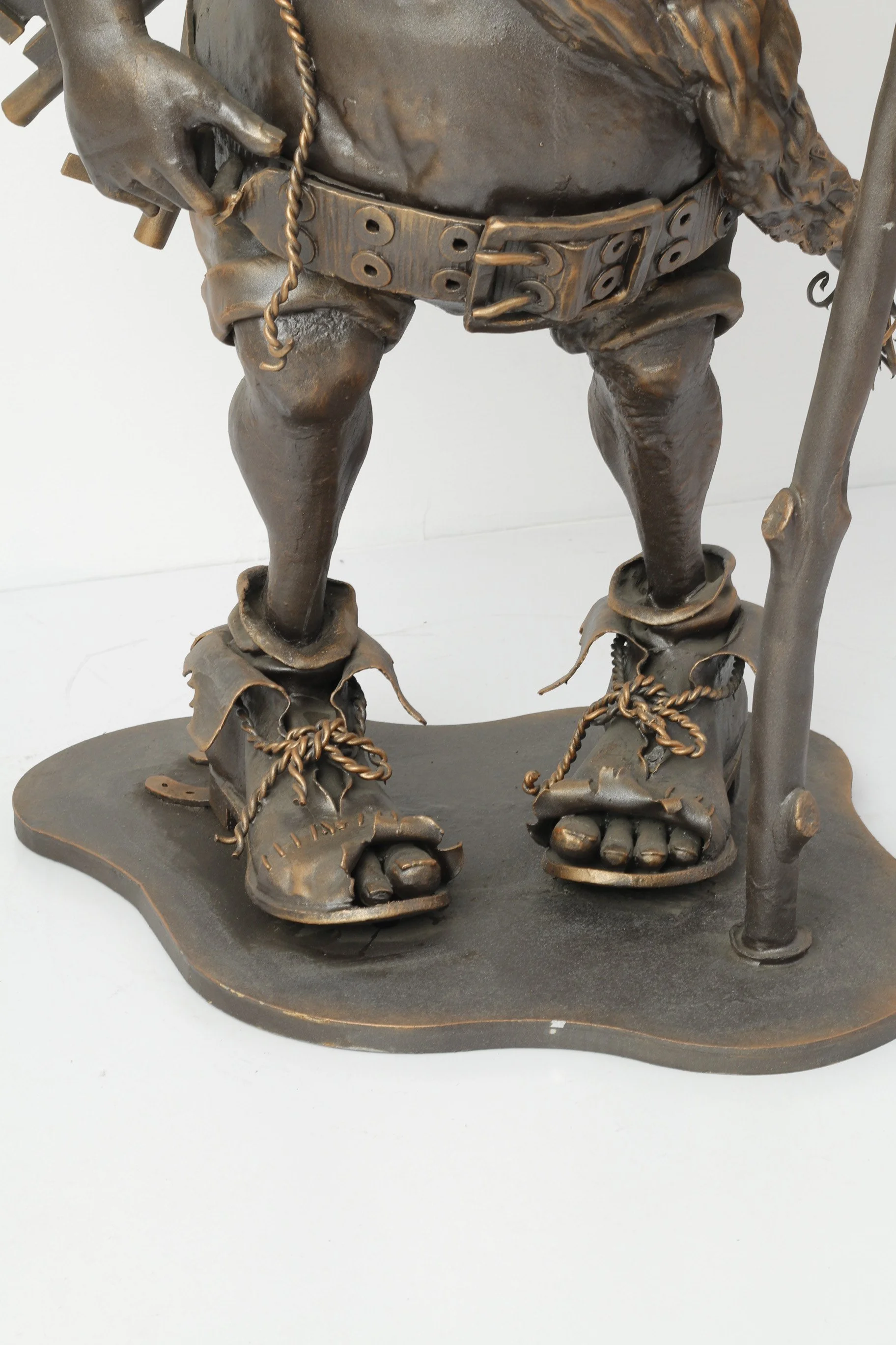 Zbliżenie na detale rzeźby kutej. Każdy fałd ubrania, sznurowadło i tekstura są ręcznie wykuwane, co nadaje postaci realizmu.