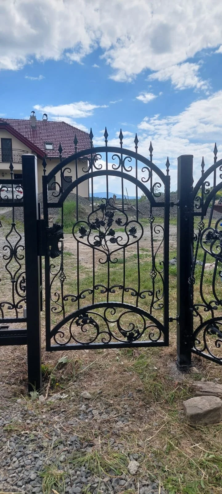 Widok na detale furtki, która jest miniaturem kunsztu zawartego w całym ogrodzeniu.