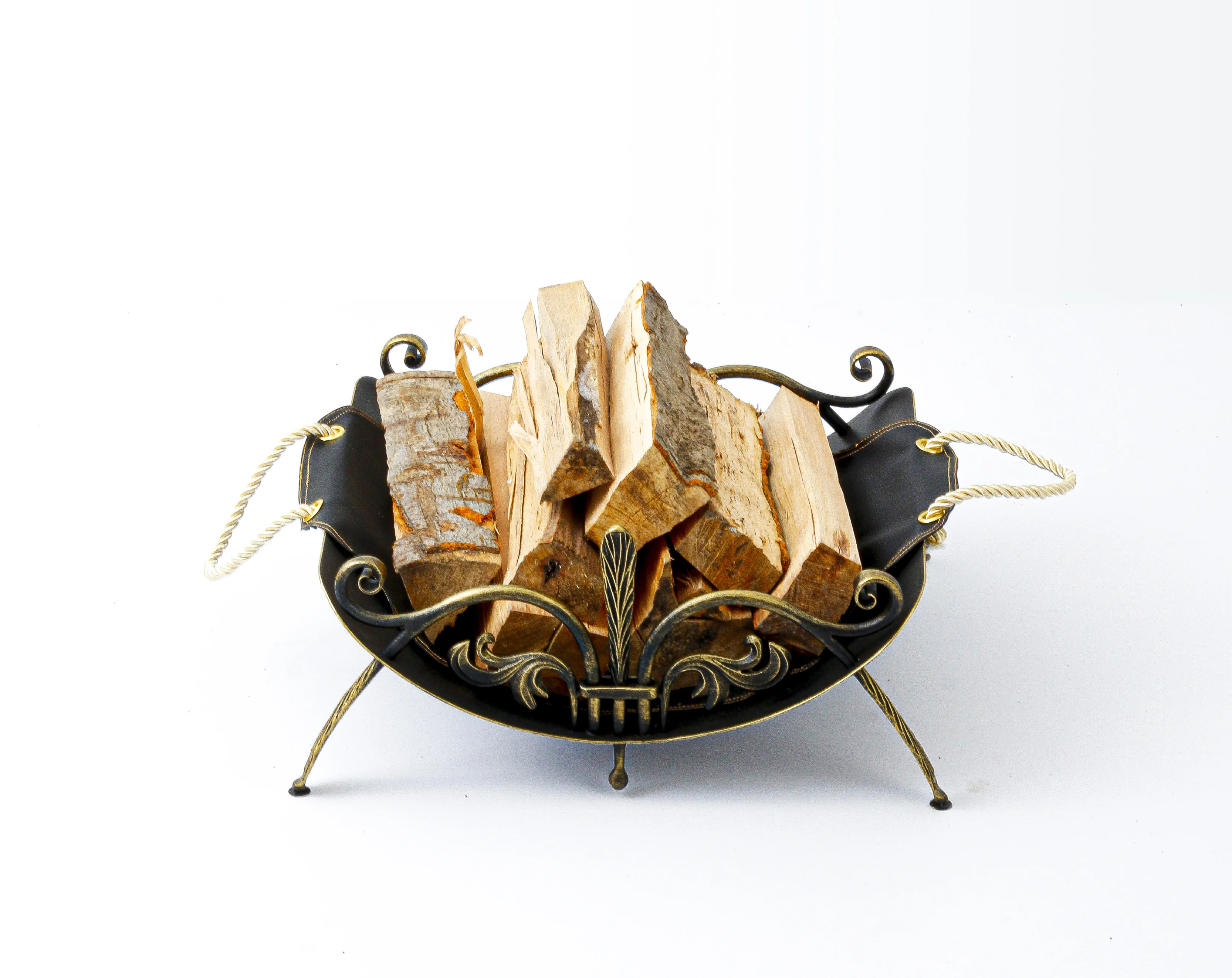 Wysoki, wolnostojący wieszak na ubrania. Konstrukcja kuta, oparta na trójnogu. Posiada haczyki górne oraz dolną obręcz na parasole.
