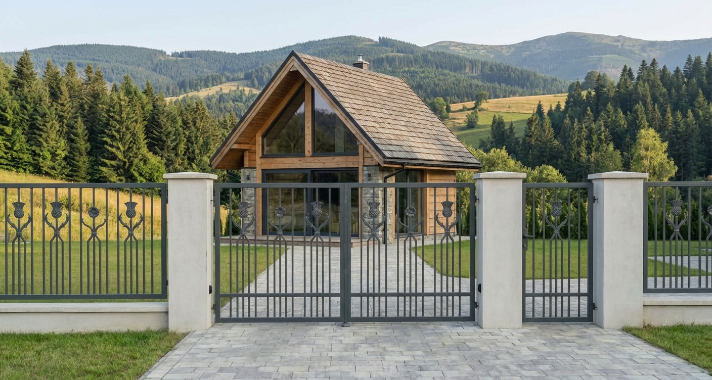 Prezentowany projekt to kwintesencja współczesnego luksusu, gdzie surowość stali spotyka się z finezją natury. Ogrodzenie 'Botaniczna Symfonia' marki IDEOVO to nie tylko bariera architektoniczna, ale przede wszystkim manifestacja statusu i wyrafinowanego smaku właściciela posesji. Centralnym punktem kompozycji są ręcznie kute motywy ostu – symbolu siły i niezależności – które wprowadzają organiczny rytm do geometrycznej, minimalistycznej ramy. Ciemna, antracytowa barwa o matowym wykończeniu doskonale koresponduje z nowoczesną bryłą rezydencji, tworząc spójną i prestiżową całość. Każdy element został zaprojektowany z myślą o harmonii z otoczeniem, gdzie pionowe tralki nadają konstrukcji lekkości, a jednocześnie gwarantują najwyższy poziom bezpieczeństwa. Inwestycja w to rozwiązanie to deklaracja umiłowania dla ponadczasowej estetyki, która podnosi wartość rynkową nieruchomości, zamieniając zwykłe wejście w monumentalną wizytówkę domu. To dialog tradycyjnego rzemiosła z potrzebami nowoczesnej architektury, który zachwyca swoją precyzją i nieoczywistym podejściem do detalu, definiując na nowo pojęcie rezydencjonalnej elegancji.