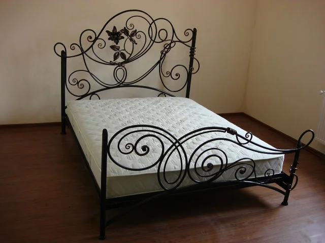 Połączenie solidności stali z delikatnością motywów kwiatowych. Czarne wykończenie kontrastuje z jasną pościelą, eksponując misterne detale kowalskie - liście i kwiaty umieszczone centralnie na wezgłowiu.