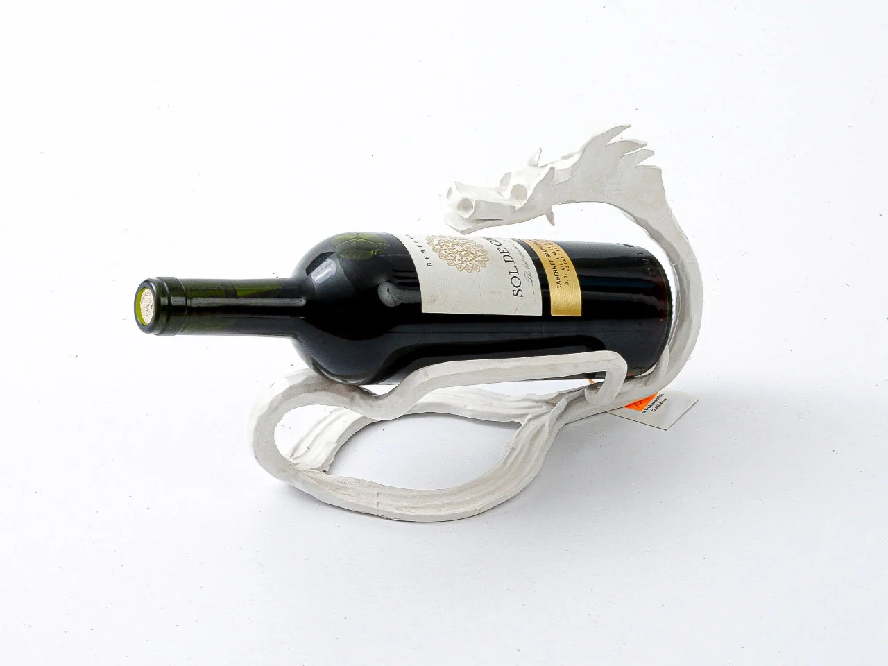 Profil kutej bestii. Dynamika wygięcia ciała smoka została tak zaprojektowana, by idealnie i stabilnie podtrzymywać butelkę wina.