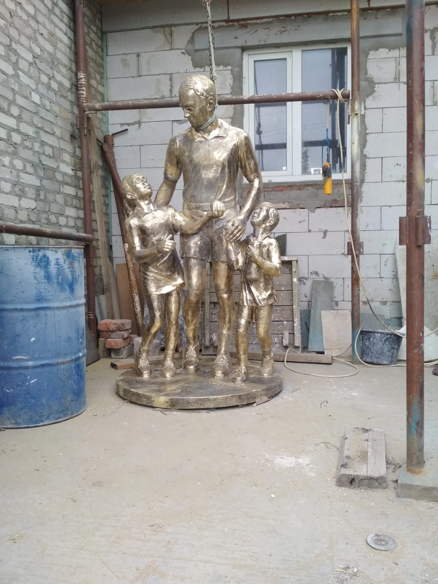 Pomnik rodziny - ojciec z dziećmi - odlew