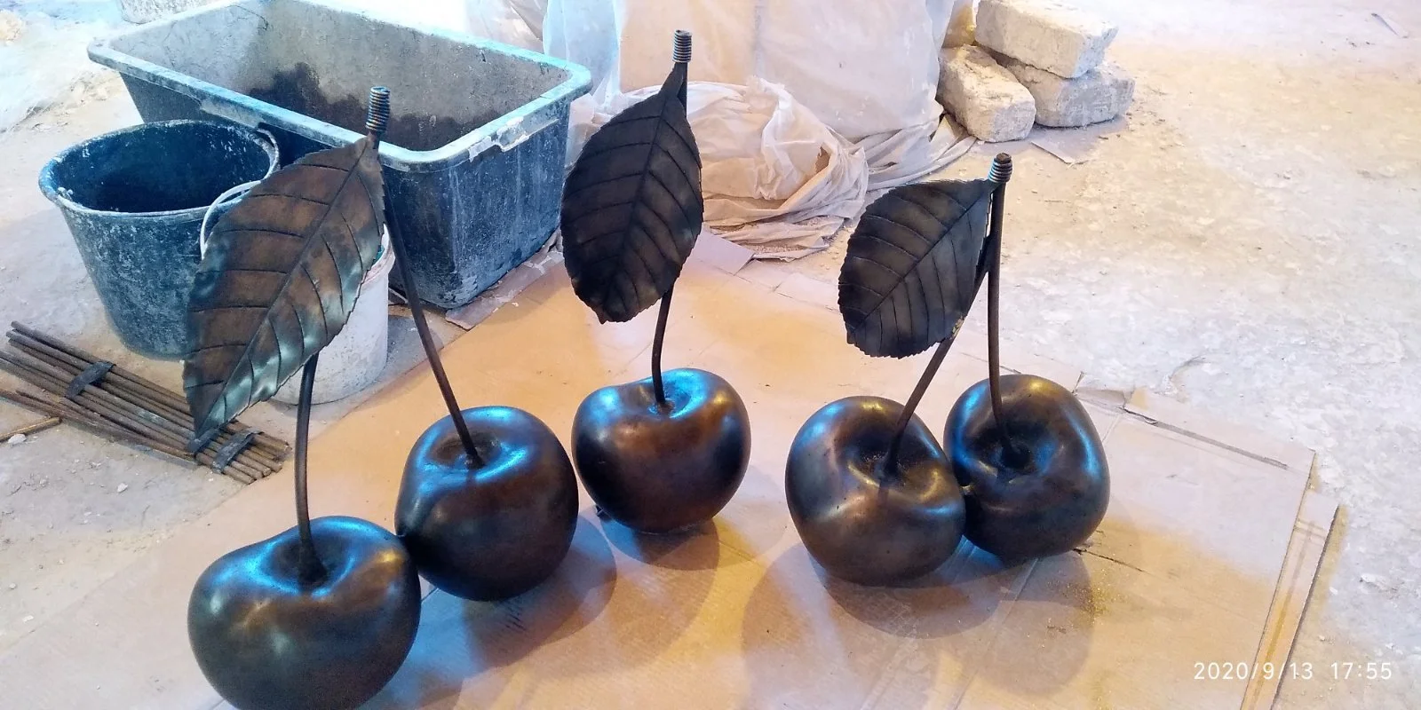 Zabawna i efektowna propozycja do ogrodu – rzeźby przedstawiające pary wiśni w dużej skali.