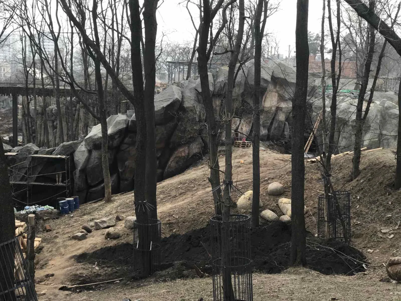 Rozbudowana sceneria skalna wykonana techniką betonu natryskowego. Trwała i estetyczna zabudowa przestrzeni parkowej.