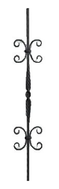 Dla osób szukających bardziej dekoracyjnych rozwiązań, polecamy **tralkę z motywem esownic**. Połączenie skręconego pręta z symetrycznymi "ślimakami" tworzy efektowny wzór, który świetnie prezentuje się w ogrodzeniach o charakterze pałacowym lub dworkowym.
