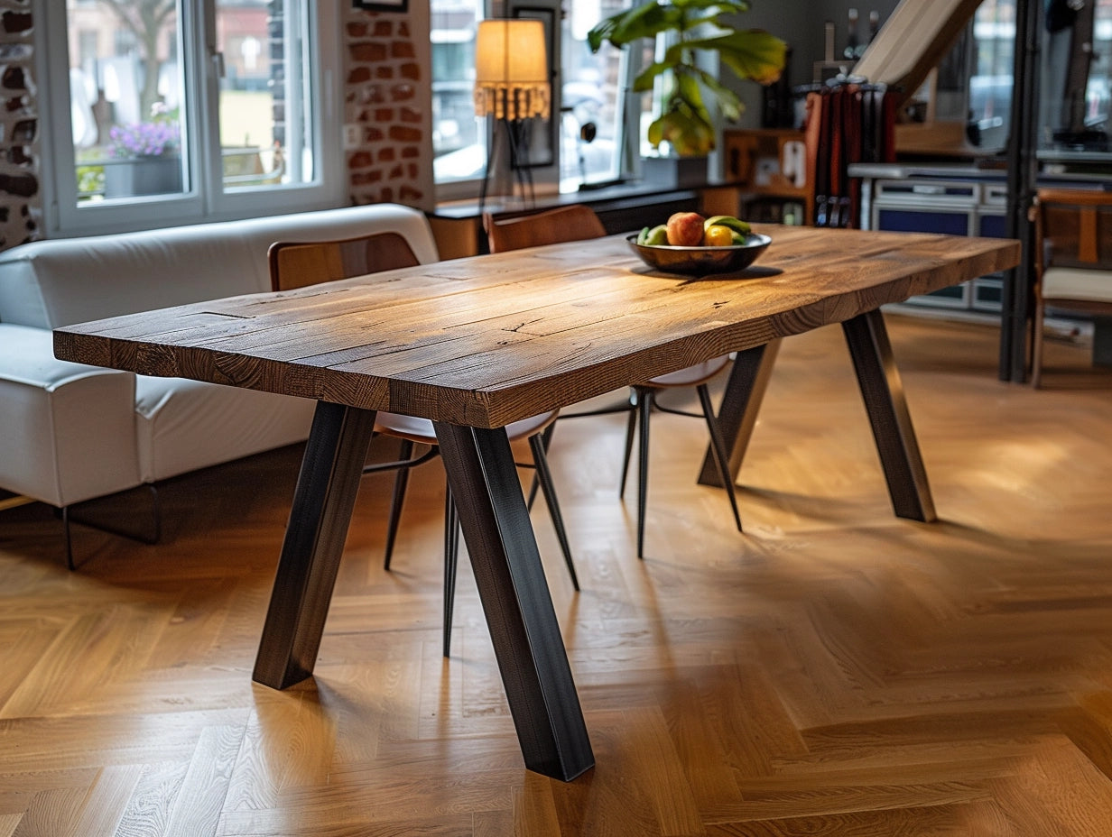 Nowoczesny stół z drewnianym blatem - ręcznie kuty