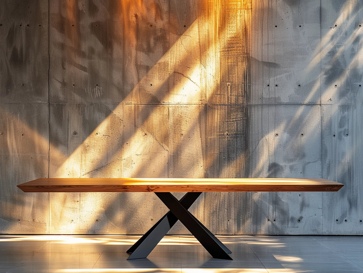 Solidny stół konferencyjny z drewnianym blatem - ręcznie kuty