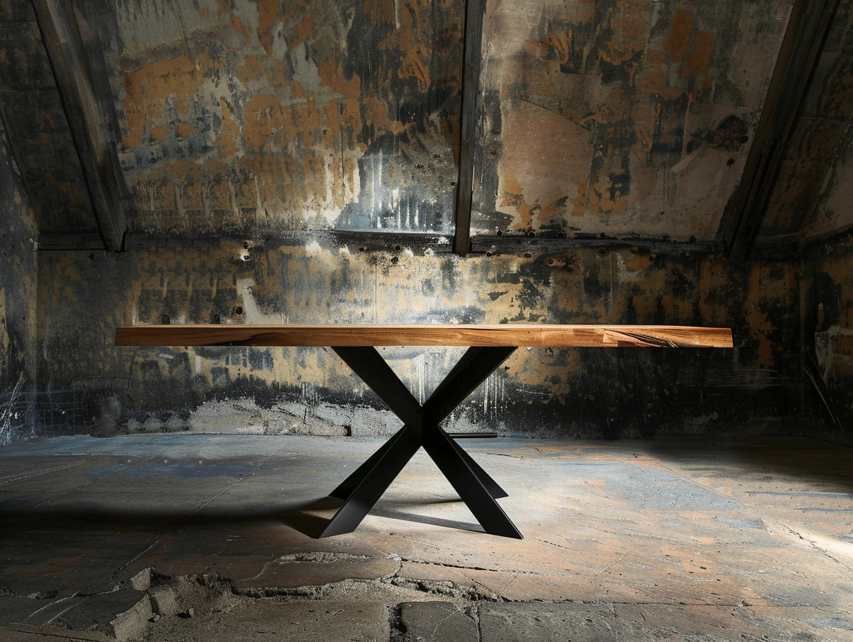 Solidny stół z drewnianym blatem - ręcznie kuty na wymiar