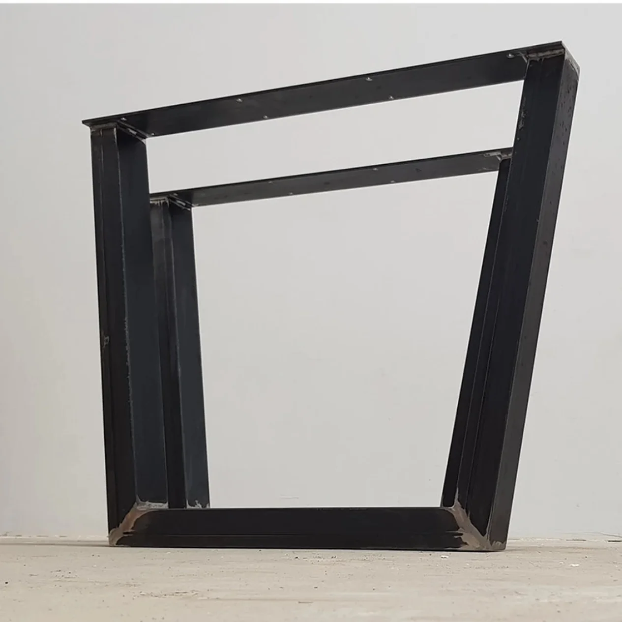 Podstawa stołu dla wielbicieli prawdziwego stylu loft. Widoczne ślady obróbki i naturalny kolor stali nadają meblowi autentyczności. Stelaż przygotowany do samodzielnego lakierowania lub pozostawienia w stanie surowym.
