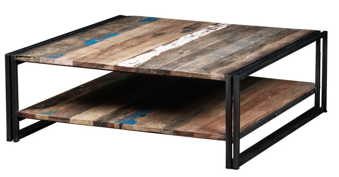 Klasyka stylu loftowego. **Stolik kawowy** o prostej, geometrycznej bryle. Połączenie czarnej stali i naturalnego drewna to ponadczasowy duet. Dzięki solidnej konstrukcji mebel jest niezniszczalny, a z czasem nabiera jeszcze więcej charakteru.
