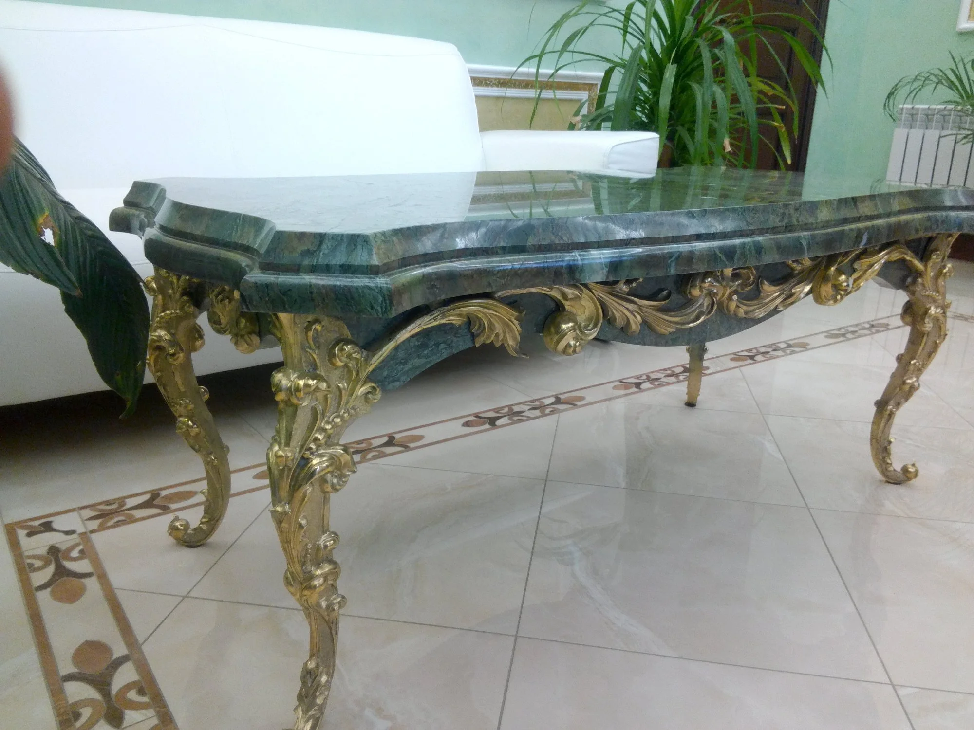 Niezwykle ekskluzywny mebel, będący połączeniem szlachetnego kamienia i artystycznego odlewnictwa. Stolik ten nawiązuje do bogatego stylu Ludwika XV (rokoko).