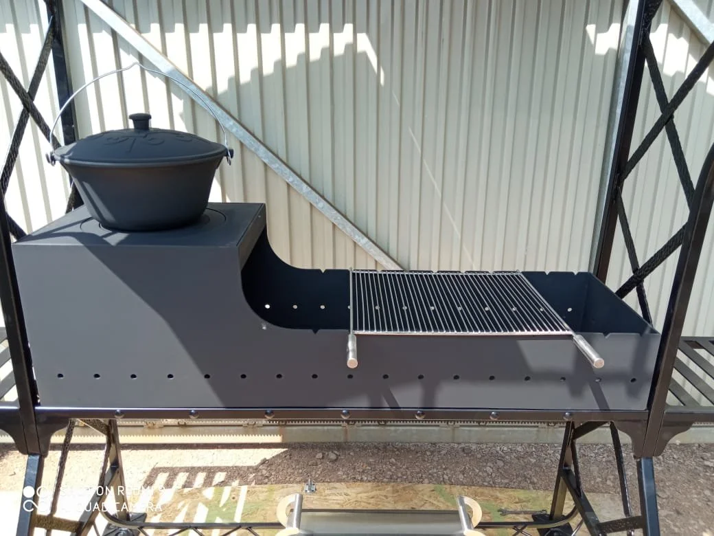 Przykład profesjonalnego wykonania urządzeń gastronomicznych do ogrodu. Stal kuta łączy tu funkcjonalność z surowym, eleganckim wyglądem.