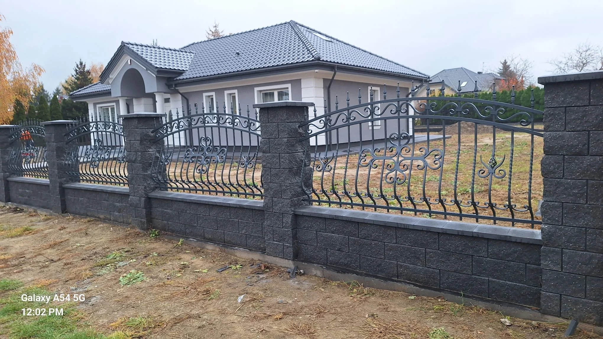 Widok z dystansu pozwala docenić wybór stylu ogrodzenia w kontekście całej bryły domu i zagospodarowania terenu.
