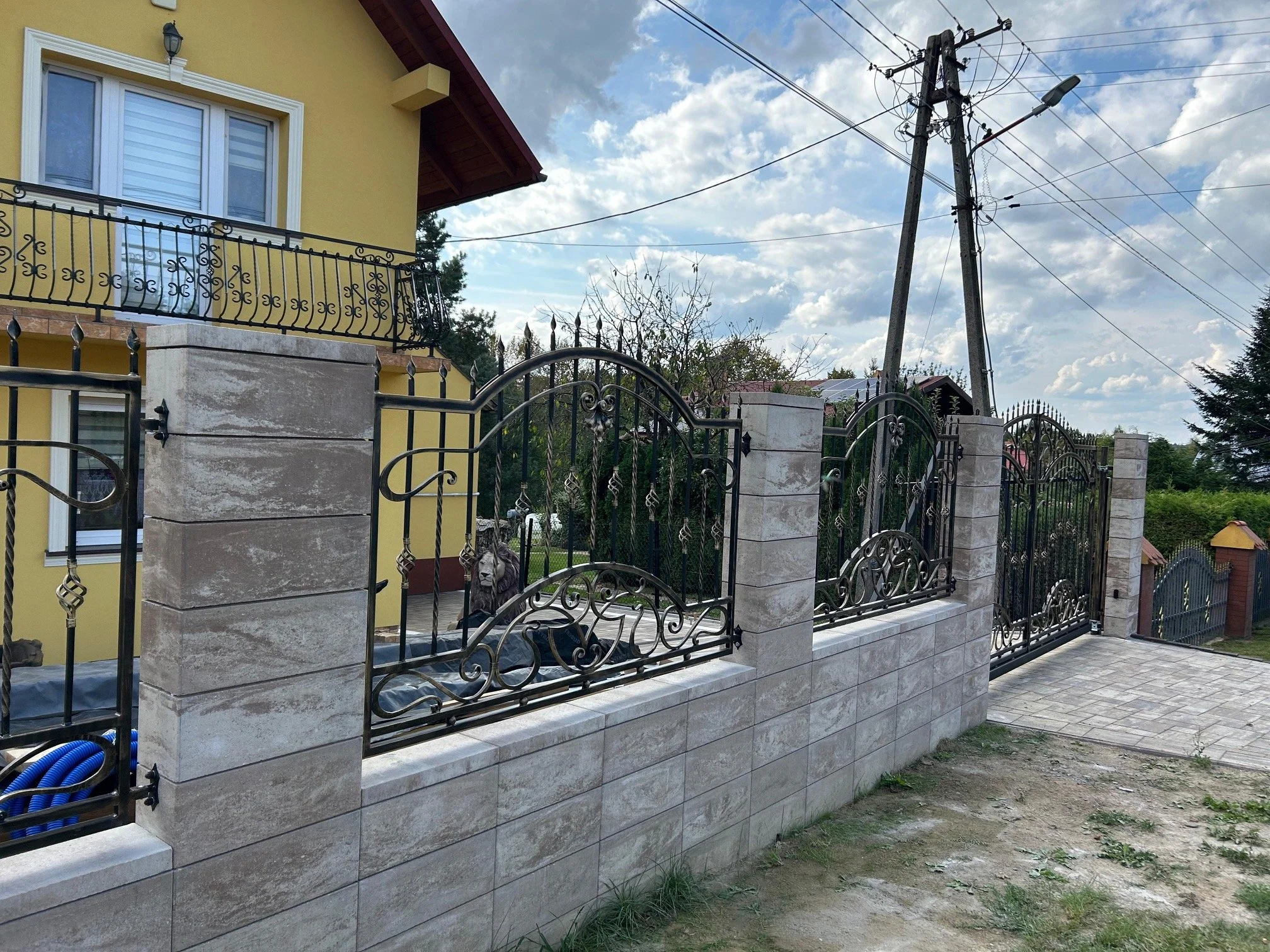 Widok podkreślający skalę realizacji i sposób, w jaki system kuty komponuje się z nowoczesną architekturą domu i otaczającą zielenią.