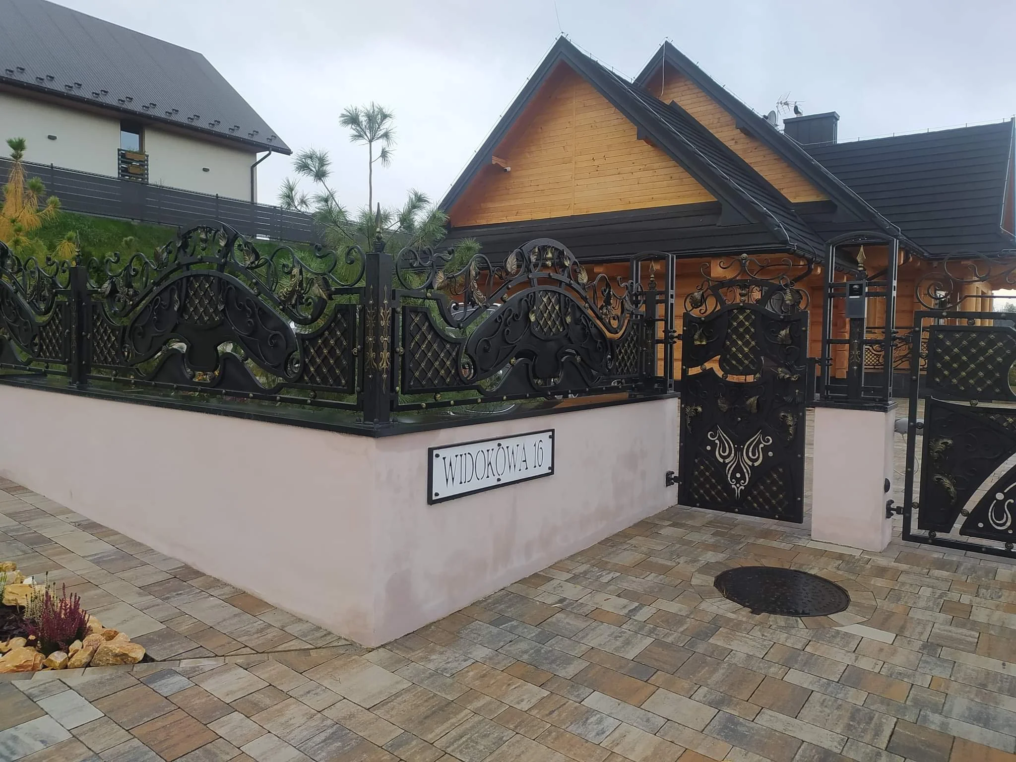 Narożnik ogrodzenia kute - tabliczka adresowa