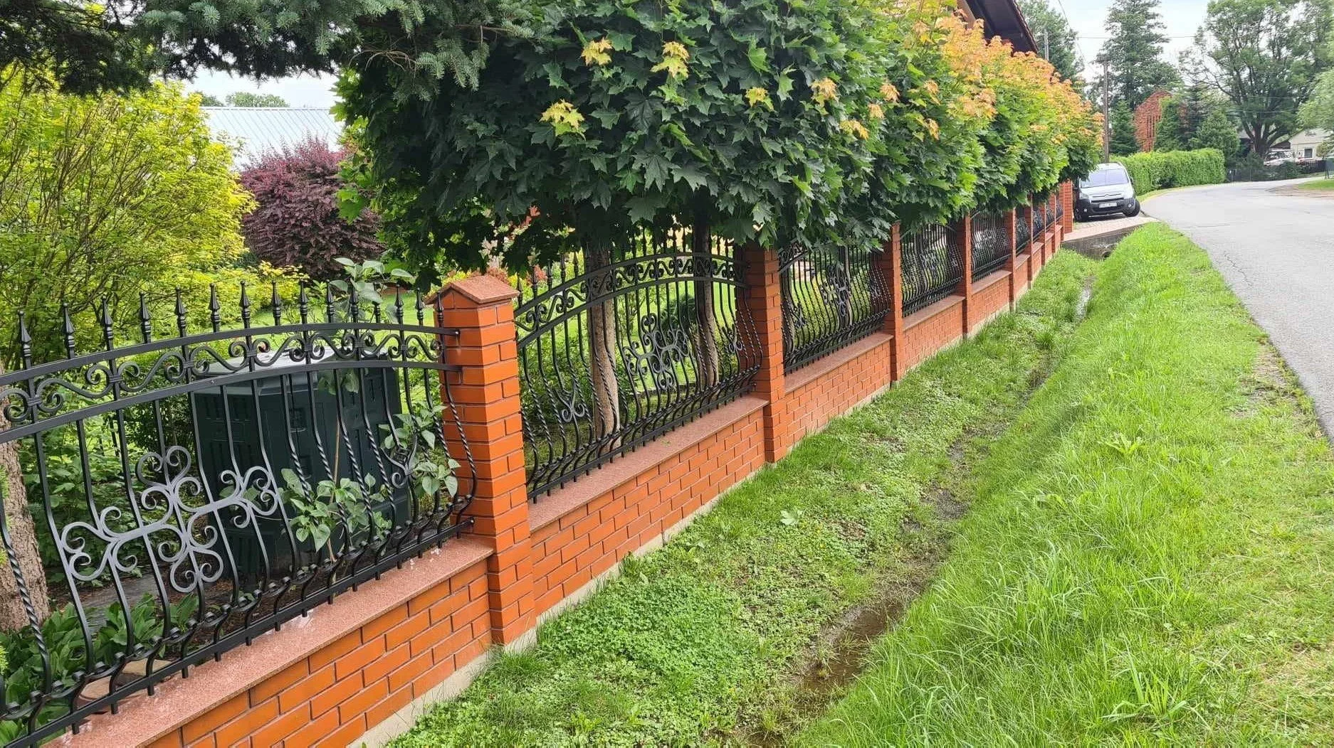 Ujęcie wzdłuż ogrodzenia pozwala docenić kunszt montażu i idealne zachowanie poziomów na całej długości posesji.