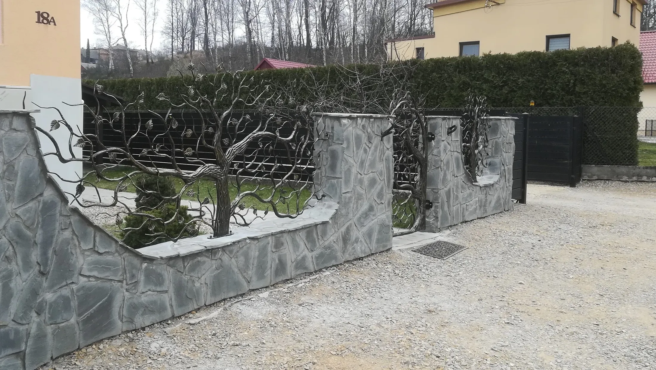 Ekskluzywne ogrodzenie kute, które wykracza poza ramy rzemiosła, stając się dziełem sztuki. Perfekcyjne odwzorowanie natury w metalu.