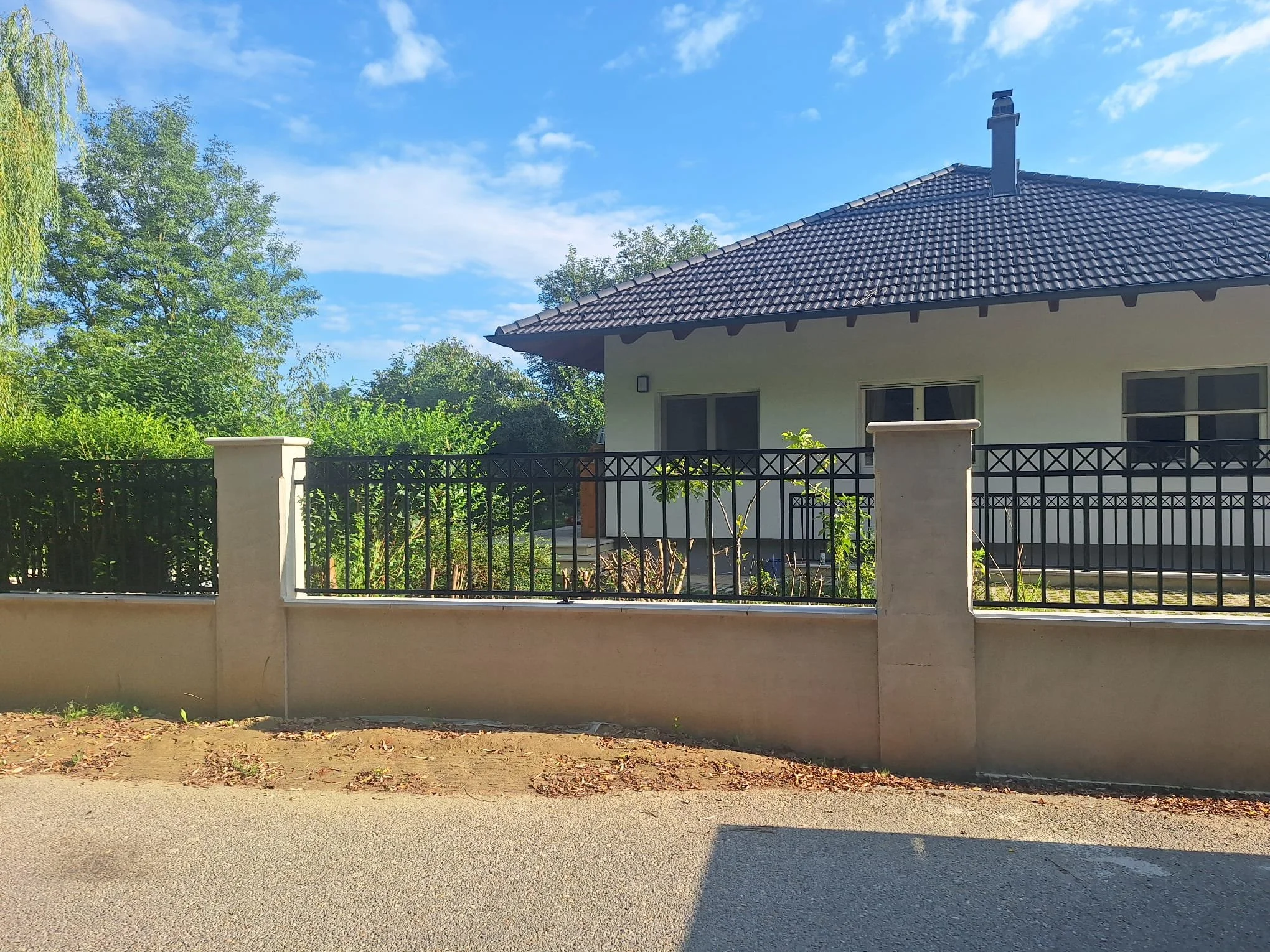 Ujęcie ukazujące skalę realizacji systemu X-Pattern na długim odcinku posesji.