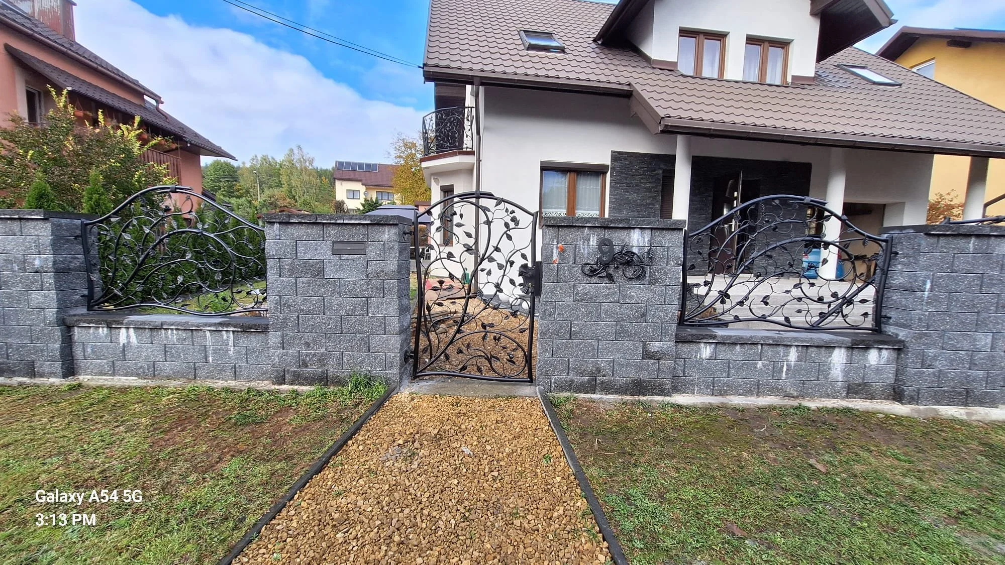Widok na całą linię ogrodzenia, która zamienia granicę posesji w wiecznie kwitnący żywopłot wykonany z najwyższej jakości stali.